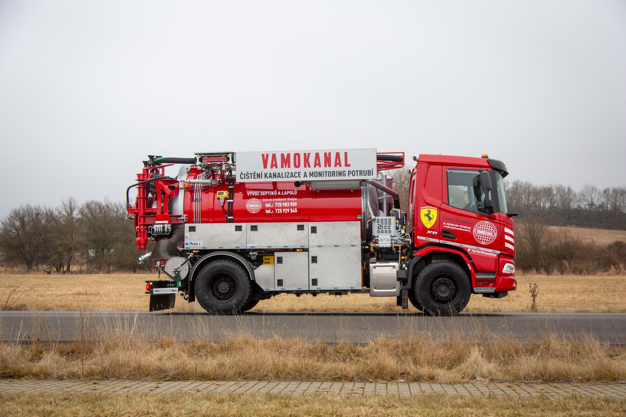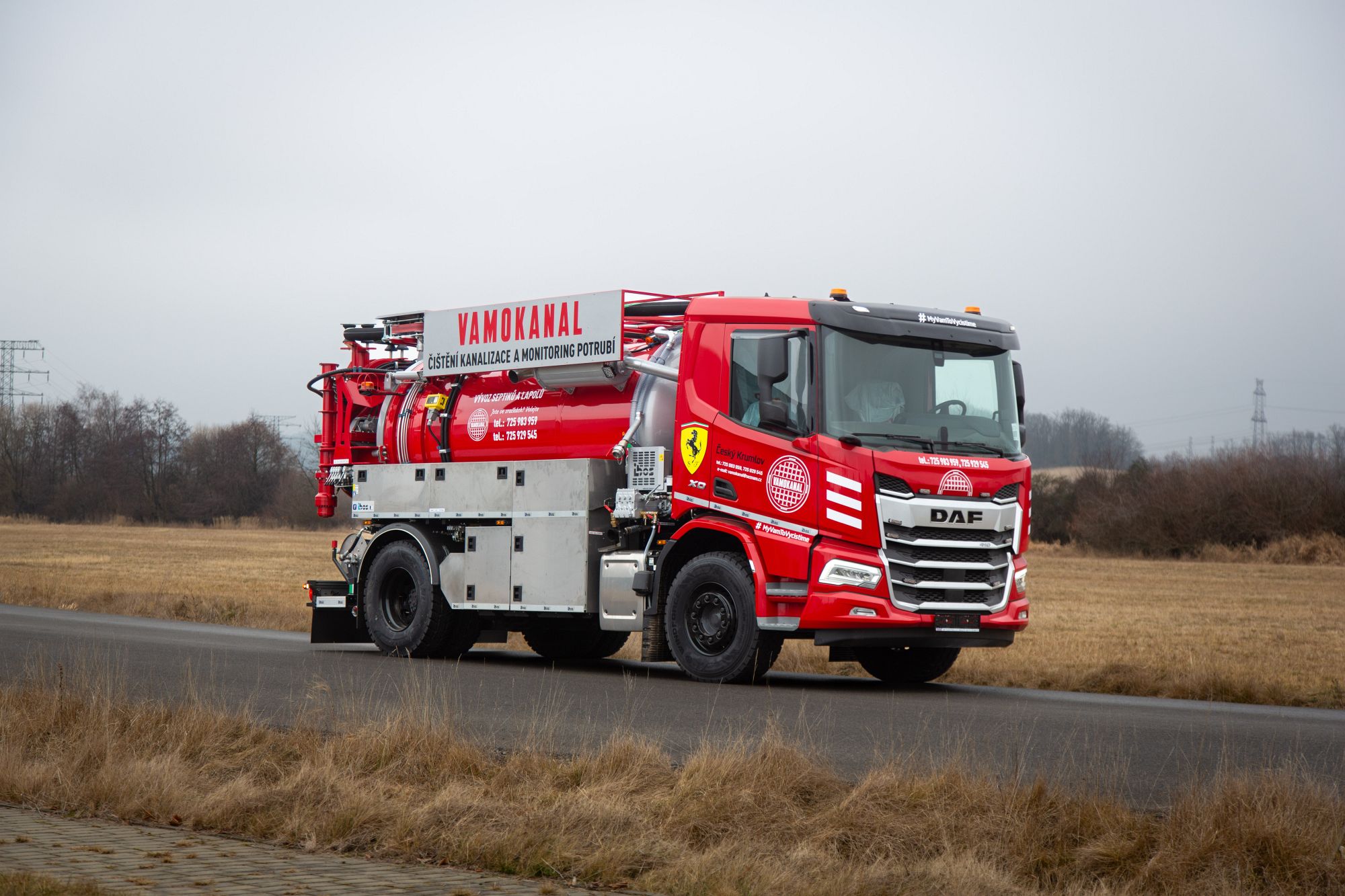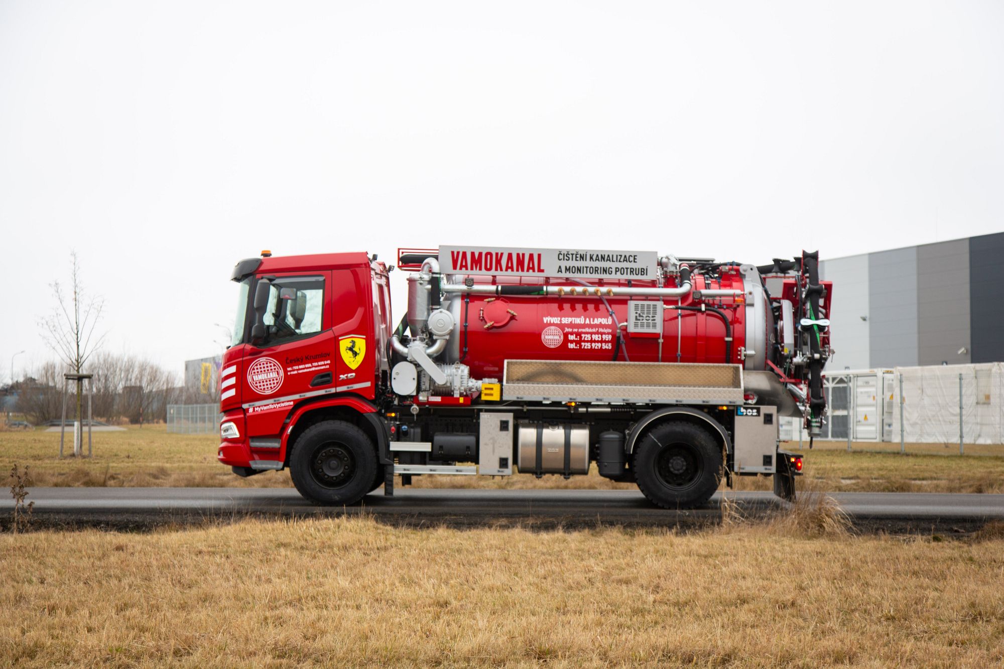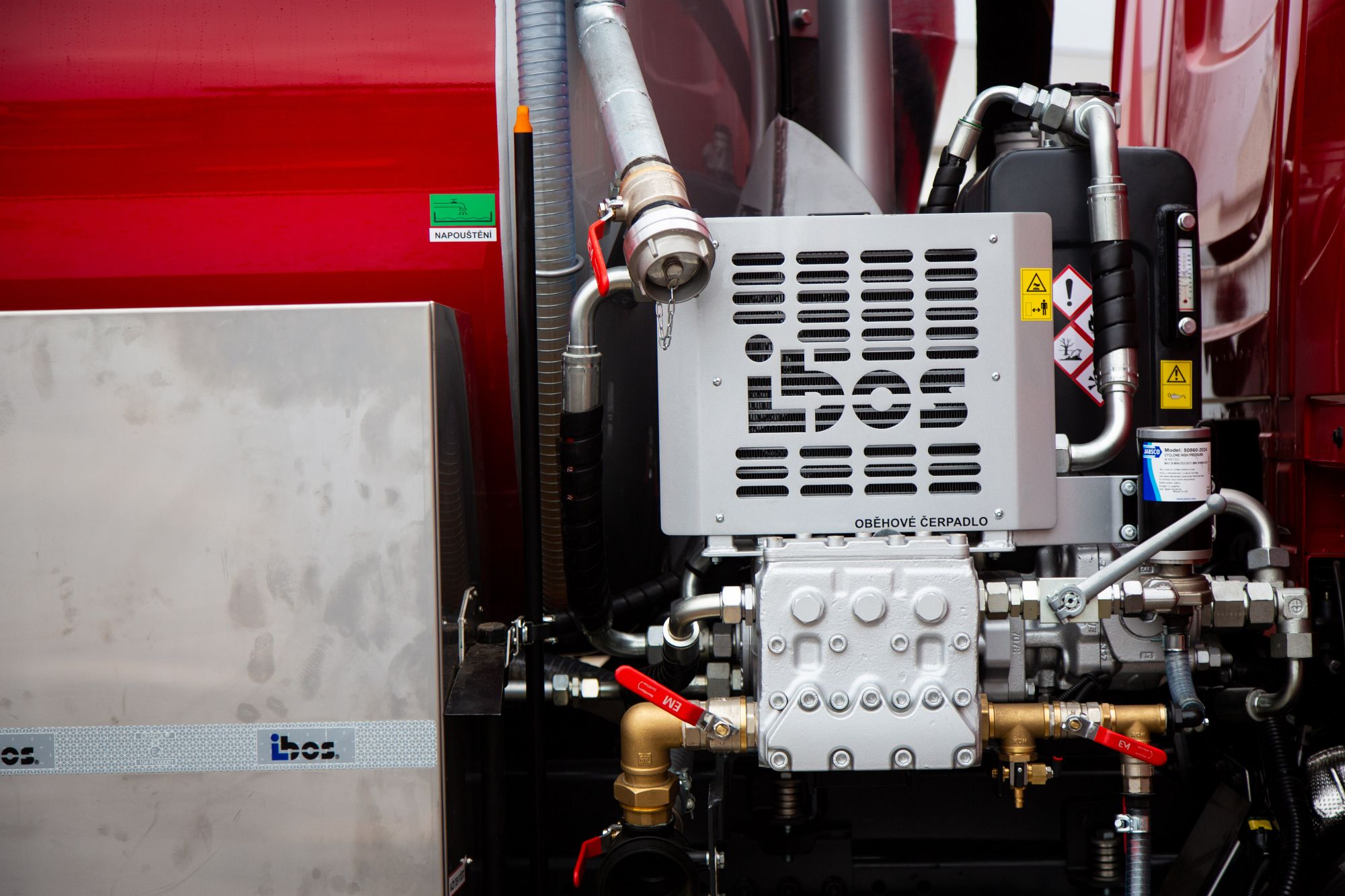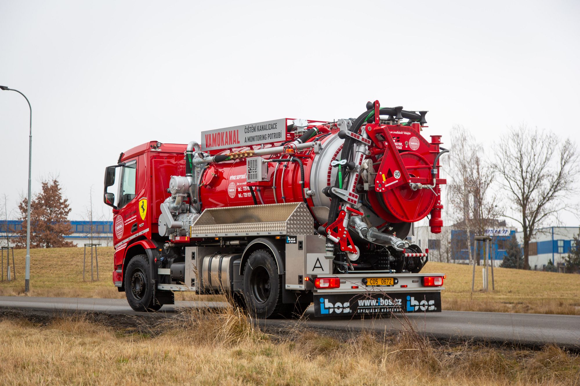 Společnost IBOS a.s. předala v uplynulých dnech svému klientovi kombinovanou čistící nástavbu IBOS Kombo 8 osazenou na šasi DAF 4×2 ve specifické a výrazné červené barvě. Jako zdroj tlakové vody slouží čerpadlo Pratissoli 140l/140 bar, o podtlak/sání se pak stará vývěva osvědčeného výrobce JUROP o výkonu 1850 m3/hod.. Toto elegantní vozidlo budete moci potkat na silnicích nebo při práci zde v jižních Čechách na Českokrumlovsku a Lipensku.