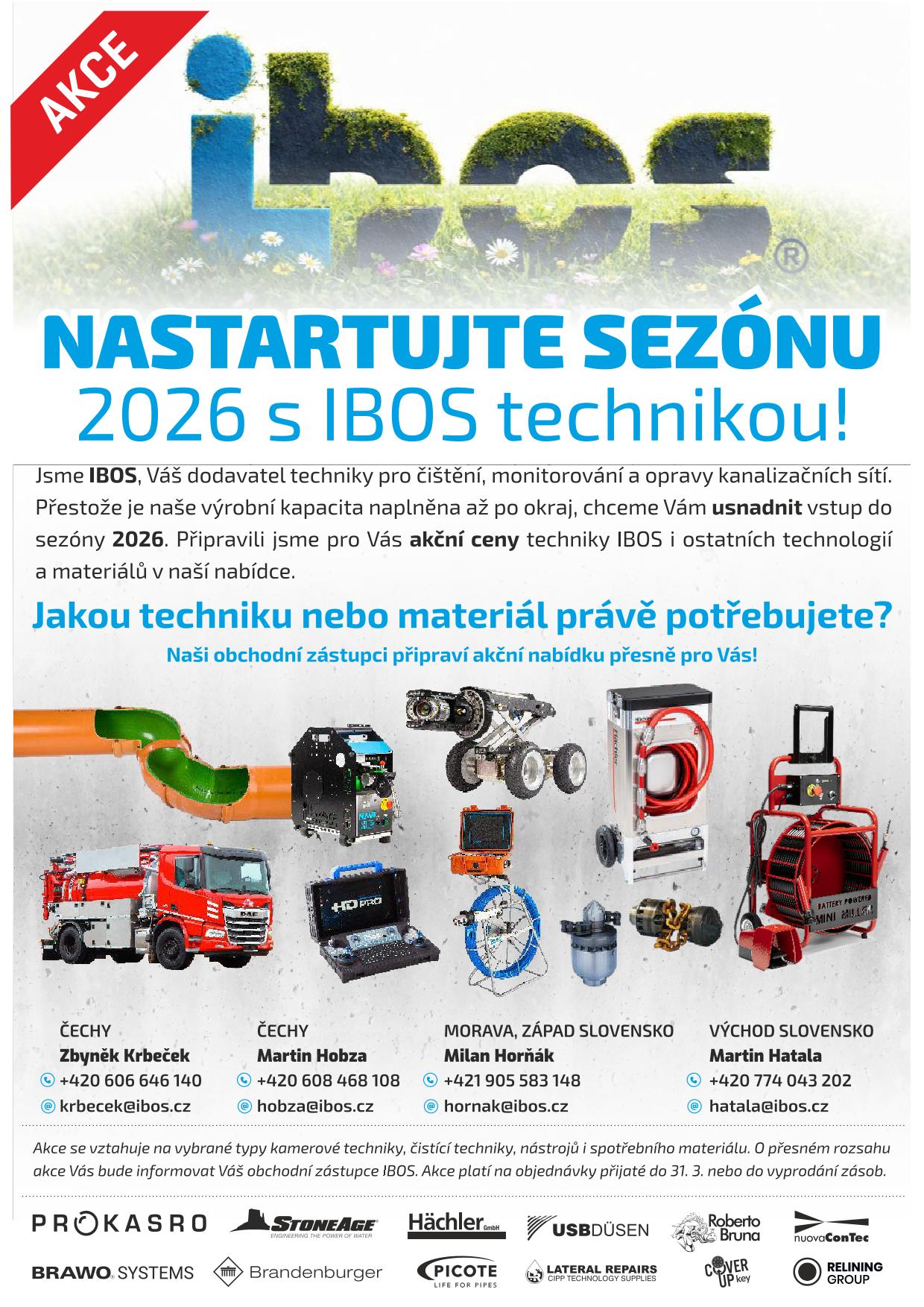 Přestože je naše výrobní kapacita naplněna až po okraj, chceme Vám usnadnit vstup do sezony 2026. Připravili jsme pro Vás akční ceny techniky IBOS i ostatních technologií a materiálů v naší nabídce.